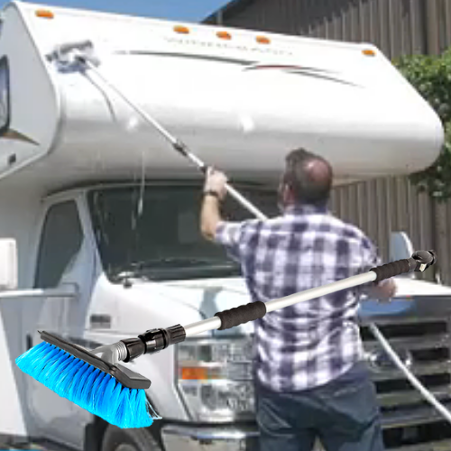 Hop over to Amazon and get a deal on Camco RV Flow-Through Wash Brush with Adjustable Handle. Camco’s RV Flow-Through Wash Brush with Adjustable Handle is the perfect tool for washing your RV, house and more. The handle adjusts from 43-inches to 71-inches long and includes a standard garden hose connection and an on/off button to control water flow through the brush head. A 10-inch wide soft bristle brush head that locks ensures that the wash head won’t spin while delivering maximum cleaning power. The brush’s rubber corners protect what you are washing.