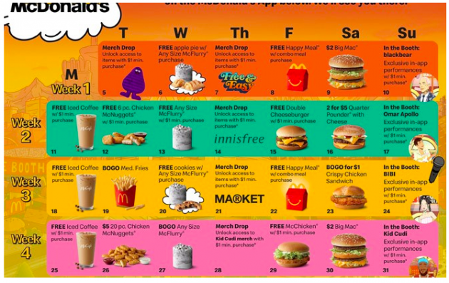 Even more fun, McDonald’s Reward Members will receive an exclusive offer in their app each day for the next four weeks.