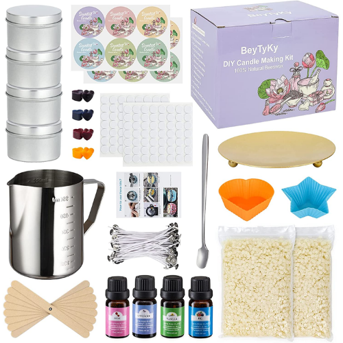 - Complete Candle Making Kit: It contains all the accessories for candle making, including candlestick, beeswax, pouring pot, candle labels, color dyes, fragrance oil, mixing spoon, candle wicks and candle center devices – anything that a beginner needs.