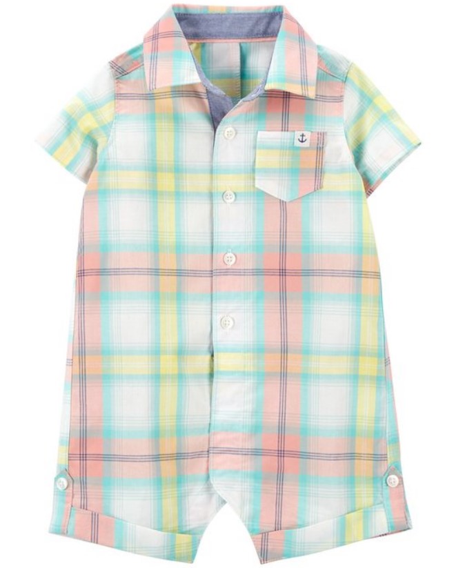 Blue & Yellow Plaid Pocket Collared Poplin Romper – $14.99 (reg. $24)