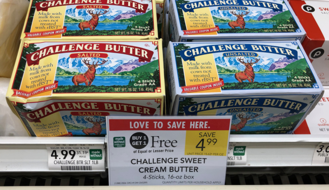 In addition to that 85¢ Challenge Whipped Butter deal, I thought I’d remind you to grab a super deal on the regular sticks of butter as well. Pair the BOGO and coupon to get a pound of butter as low as $2 this week at Publix.