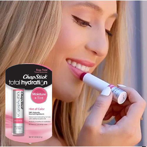 - One 0.12-ounce ChapStick Total Hydration Moisture + Tint Rose Petal Tinted Lip Balm Tube, Tinted Moisturizer