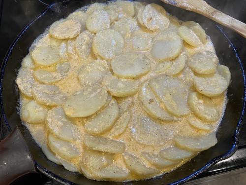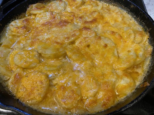 This is my quick and easy version of scalloped potatoes. It goes well with basically any meat and is great to bring to potluck dinners.