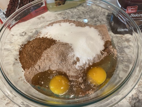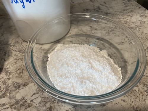 The powdered sugar is for after you’ve mixed everything up, so put that in a separate bowl.