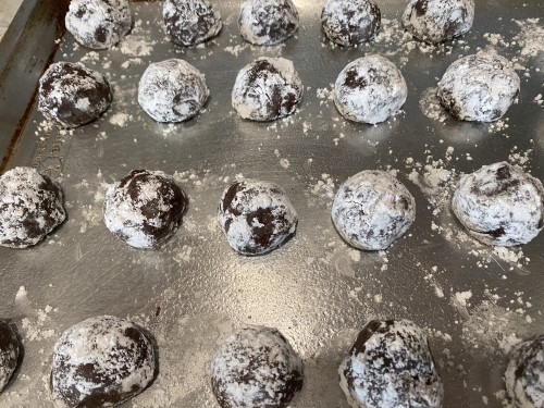 Then you’re going to scoop out tablespoons of dough and roll them in the powdered sugar.