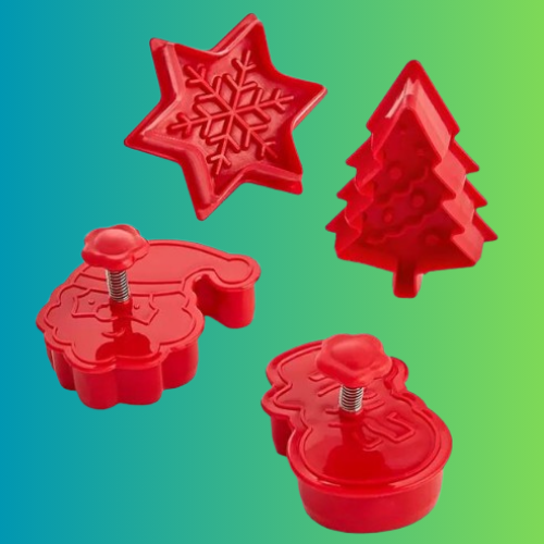 - Set includes: snowflake, tree, Santa and snowman cutters