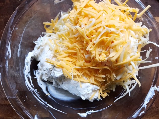 3. Add in the shredded cheese and mix on low until everything is well combined.