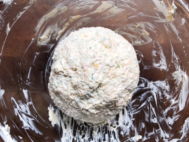 6. Wrap in a clean sheet of plastic wrap and chill in the fridge for one hour. Serve with crackers, vegetables, or pretzels.