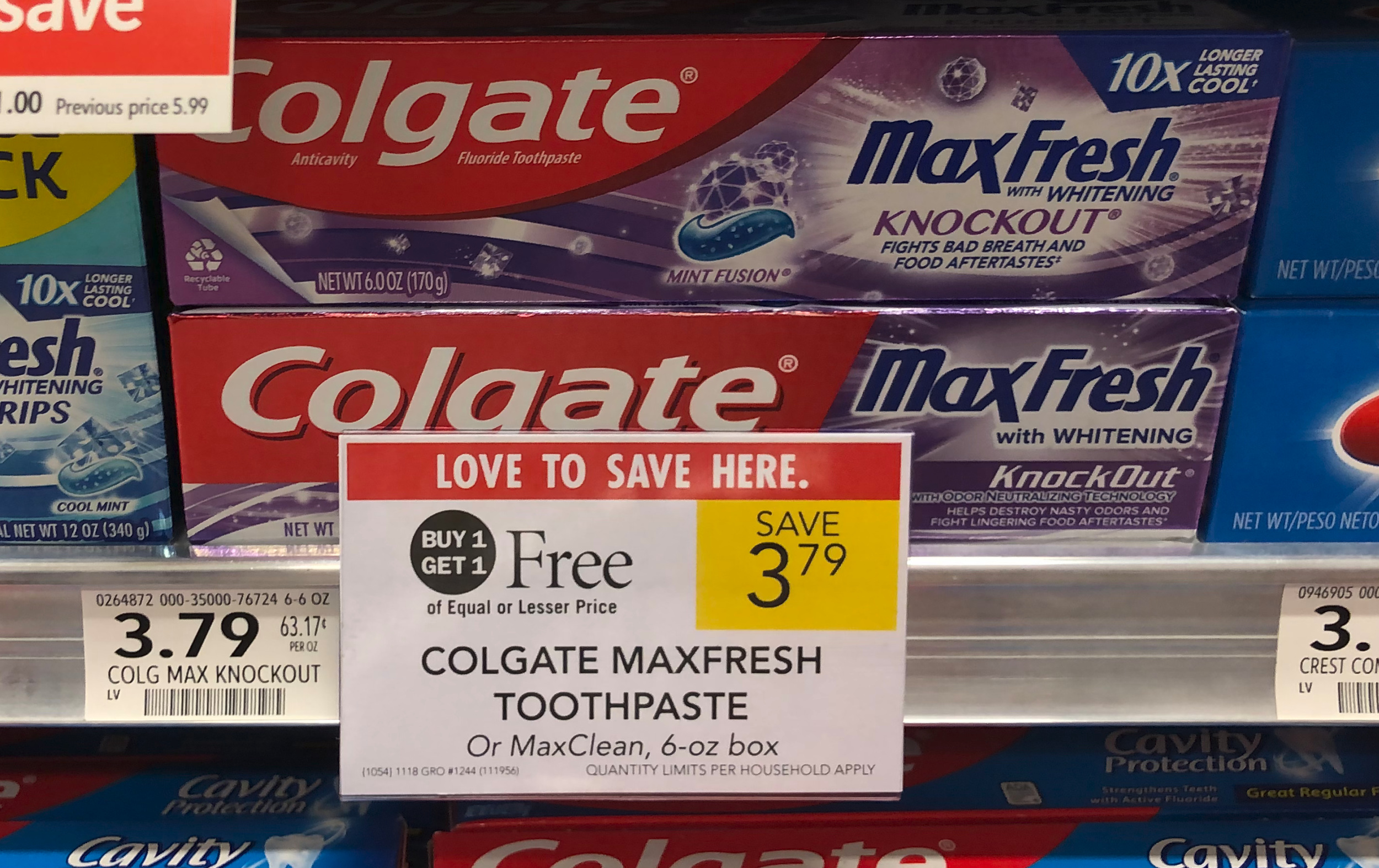 We have a nice deal on Colgate MaxFresh toothpaste. Clip your coupon and pick up toothpaste for as little as FREE right now at Publix.