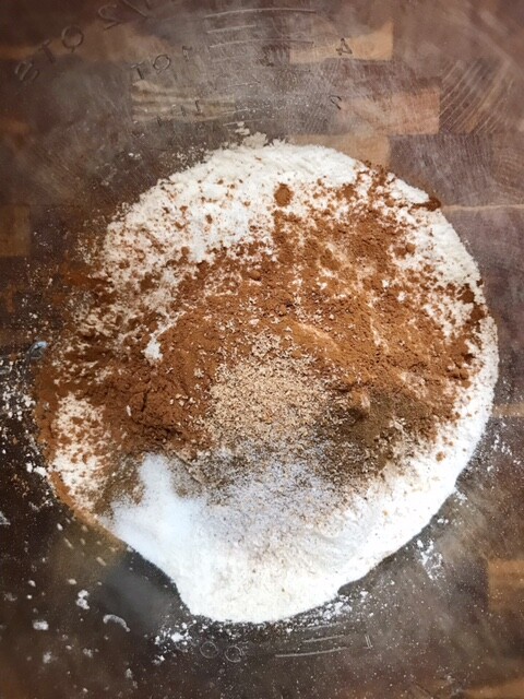 - In a mixing bowl, whisk together the flour, baking powder, baking soda, nutmeg, cinnamon, cloves, and salt.
