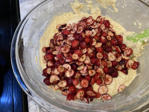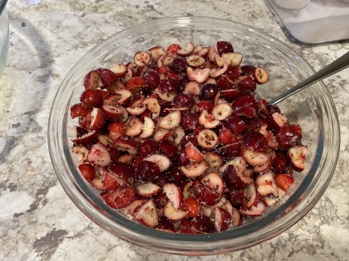 The most annoying step of this recipe is cutting the cranberries into quarter. If someone has an easy way to do this, I’m all ears!