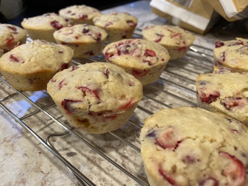 I’ve been remaking some of my older recipes to refresh the information and pictures. I had gotten a bag of cranberries on sale, so I wanted to make my fresh cranberry muffins. But I ended up tweaking the recipe enough that it turned into something new! I added brown sugar and doubled the recipe and felt like this was something different, so here you go. These are delicious to eat warmed up with some butter. Perfect for breakfast or an afternoon snack!