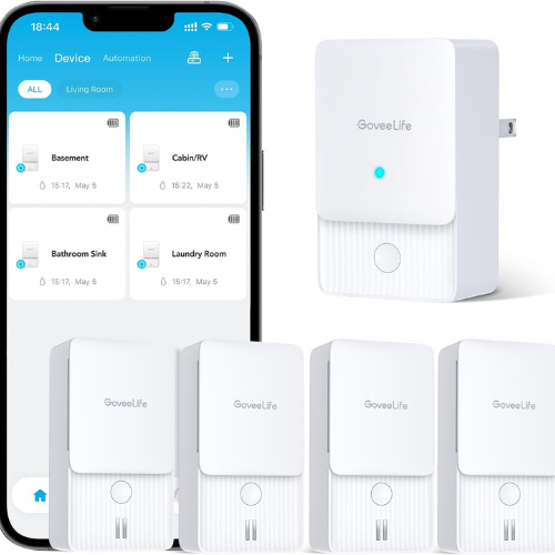 Protect your home from potential water damage with the GoveeLife WiFi Water Leak Detector, 4-Pack. These smart water leak sensors come equipped with a 100dB adjustable alarm and app alerts, providing you with real-time notifications in case of any water leaks in your basement, kitchen, or bathroom.
