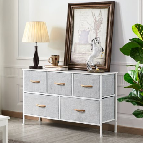 Create stylish storage with this Five Drawer fabric Storage organizer. The organizer separates and stores all of your wardrobe and linen essentials, and make it easy to find and grab what you need right away. Five removable drawers separate and organize clothing and accessories like hats, socks and shoes, scarves, blankets and more in one convenient place. They offer roomy space for storing out of season clothing, shoes, purses, scarves, bedding, linens and more. The classic fabric adds stylish storage to any bedroom closet, laundry area or other storage space in your home, and a wood top provides a hard surface to place lamps, accessories, home decor and more. Right now snag this for Just $59.99 + Free Shipping!