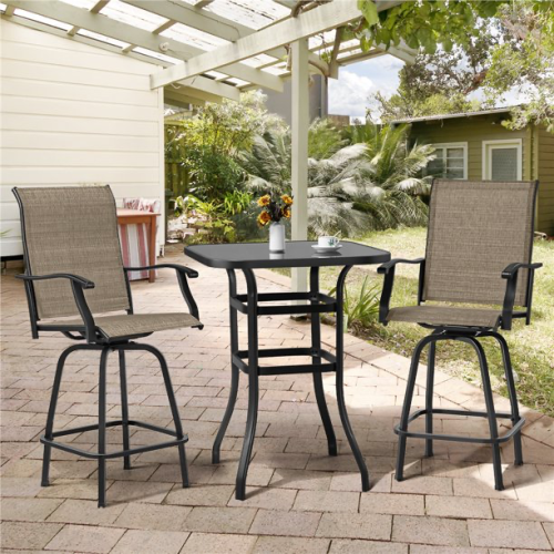 Sit back and enjoy a cup of coffee or have a pleasant meal outside with this Outdoor Bistro Table from Topeakmart. Featuring metal construction in a black finish, this table is weather-resistant to withstand the outdoor elements. The table stands atop four legs and has a glass tabletop for resting beverages, serving mouthwatering snacks and displaying magazines while you relax after a long day or while you’re entertaining guests. Complete the look with any style of chairs and enjoy entertaining family and friends for years to come. Right now snag this for Just $98.99