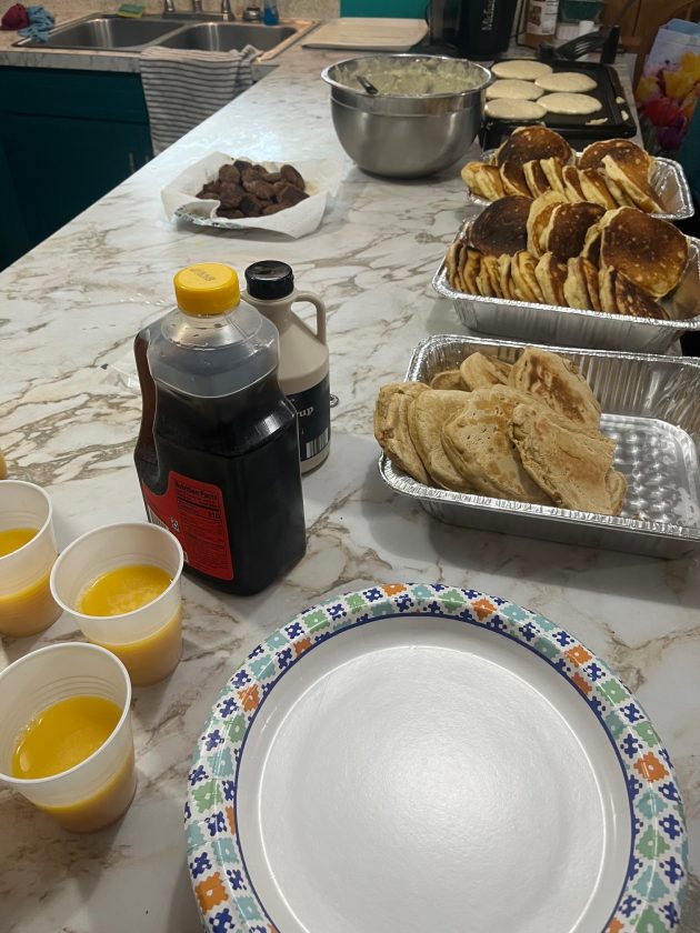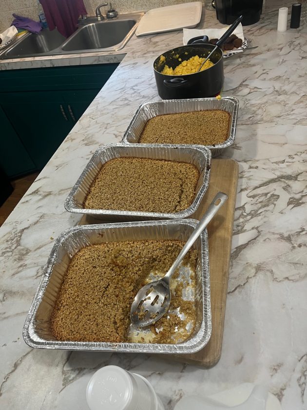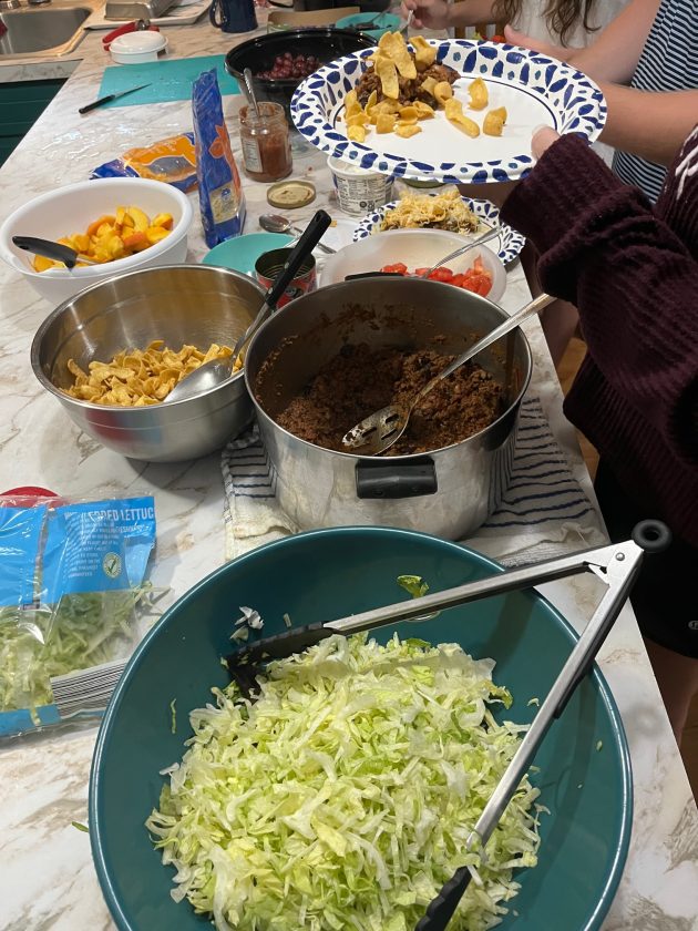 Whatever meals or parts of meals you signed up for, you were in charge of bringing the ingredients for and cooking/baking.