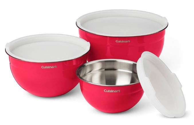 Red 3-Piece Mixing Bowl and Lid Set – $29.99 (reg. $40)