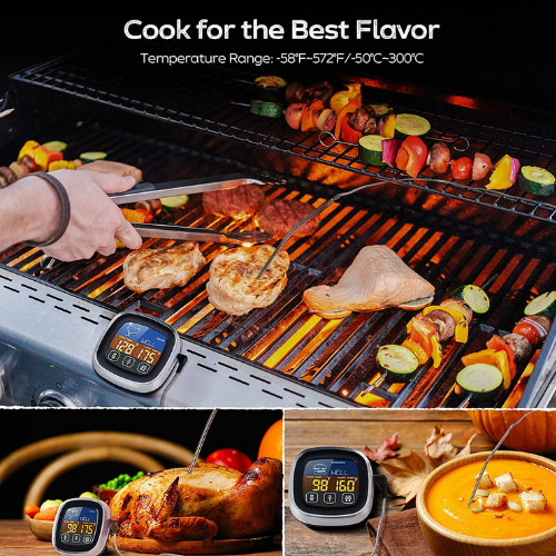 - LCD Display Sensitive Touch Screen-Touch the three touch buttons on the screen to set time/temperature, switch the unit or change the modes. Large LCD display with backlight enables a crystal clear view and allows for wide viewing angles, perfect for outdoor BBQ or patio grill at night.