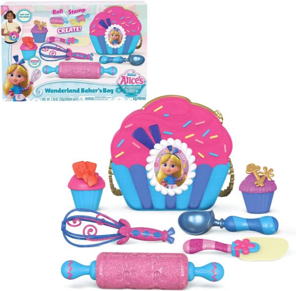 - The Disney Junior Alice’s Wonderland Bakery Bag Set has everything kids and toddlers need to build and design their own play tea upcakes, cookies, and more.