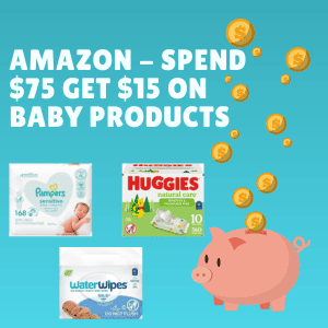 Amazon: Spend $75 Get $15 in Credit on Baby Products (Limited Time Offer – good for diapers, wipes, rash cream, and so much more!)
