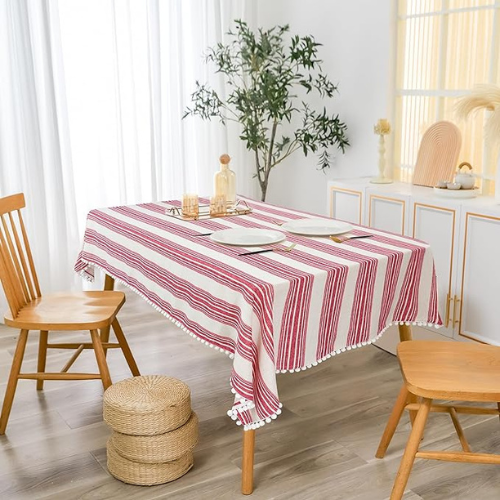 Transform your dining experience with the DriftAway Burlap Linen Tablecloth – a rustic yet elegant addition to your table decor. Designed for 6-foot rectangle tables, this wrinkle-resistant tablecloth features charming pom-pom tassels for a touch of festive flair. The holiday-themed 54 x 84-inch tablecloth in Chris Red Stripe adds warmth and style to your dining space. Right now you can snag this for as low as $21.74 when you clip the 15% coupon and use the coupon code 10QIGW7W. Through 12/20/23 or while supplies last.