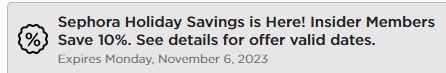 Through November 6th, Beauty Insiders will find a coupon in your wallet for 10% off with code TIMETOSAVE at checkout. VIB status members will get 15% off and Rouge status members will get 20% off!