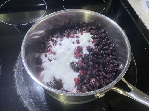 - To make the jam, heat the frozen berries, 1/3 cup sugar, and 2 tbsp. lemon juice in a saucepan on medium-high heat. Stir often until it turns into a jam-like consistency.