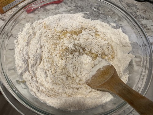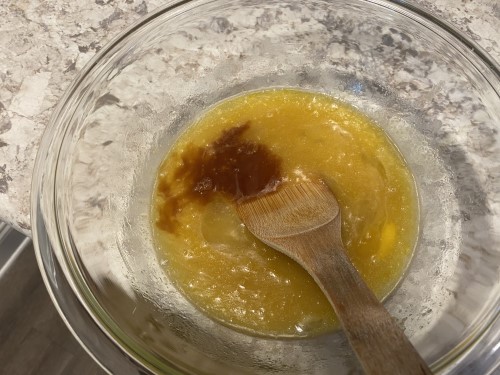 - Add the dry ingredients to the wet ingredients and mix to combine.