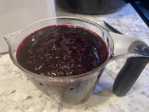 I got about a cup of jam, which was a little more than I ended up needing (but you can totally save it in the fridge for toast!).