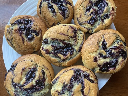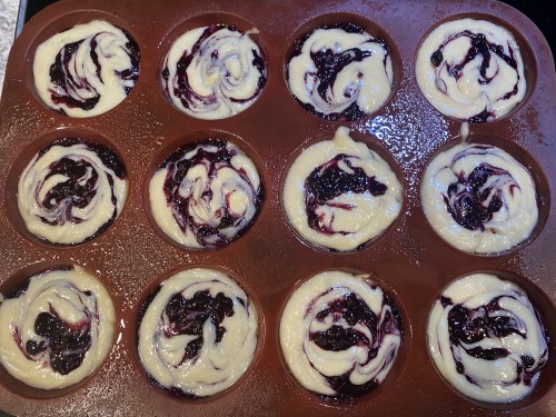 I was recently trying to use up things in my freezer and found some frozen berries that had been in there for a long time. I was craving some muffins so decided to see if I could combine the frozen berries with muffins. I came up with this berry swirl muffins, and they were a big hit!