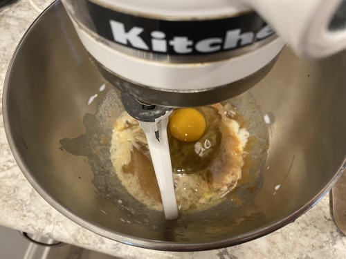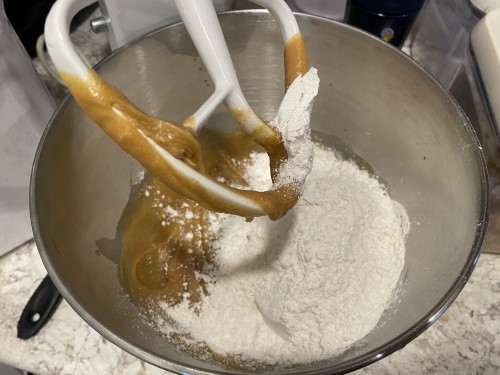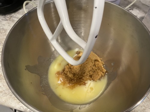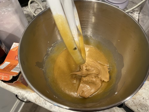 Before you start mixing together the ingredients, unwrap about 40 of the peanut butter cups. You may need a few more, but time is precious when these come out of the oven. My muffin tin only holds 24, so do at least that many! I keep them in the fridge (or even the freezer) while I’m making the cookies so that they don’t totally melt when I stick them in the warm dough.