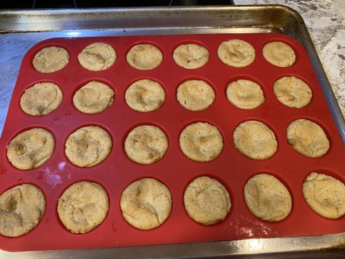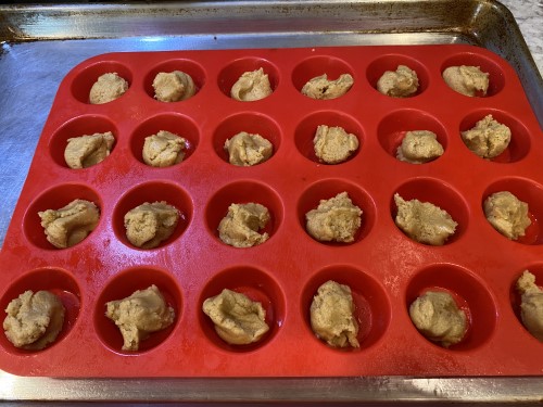 - Spoon about 1/2 tbsp. of dough into each muffin cup.