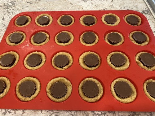 - Unwrap about 40 miniature peanut butter cups and store them in the fridge until the cookies are done.