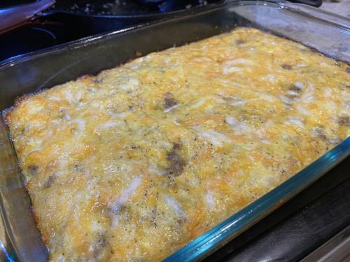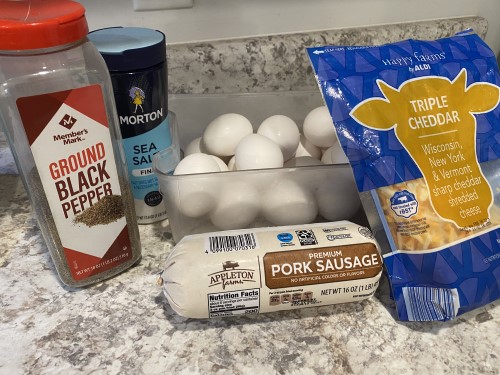 This sausage egg bake is as simple as it sounds! It has just a few ingredients: sausage, eggs, cheese, and salt and pepper.