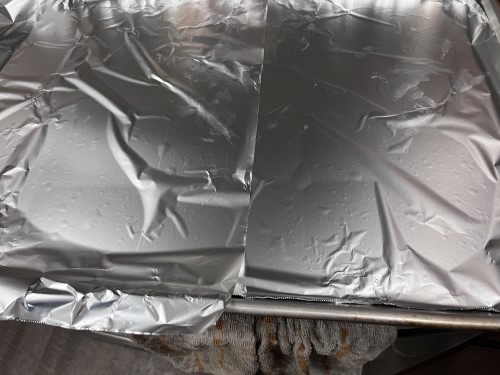 Line a baking sheet with foil. You can also put them on a rack instead of directly on the pan. (Looking back, I wish I had done this.)