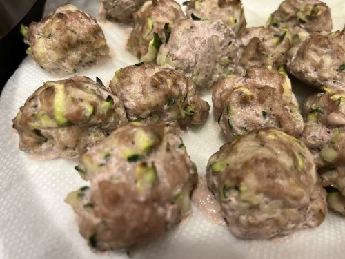 These meatballs are SO moist and full of flavor. I love eating them on top of zucchini noodles or just by themselves as a snack!