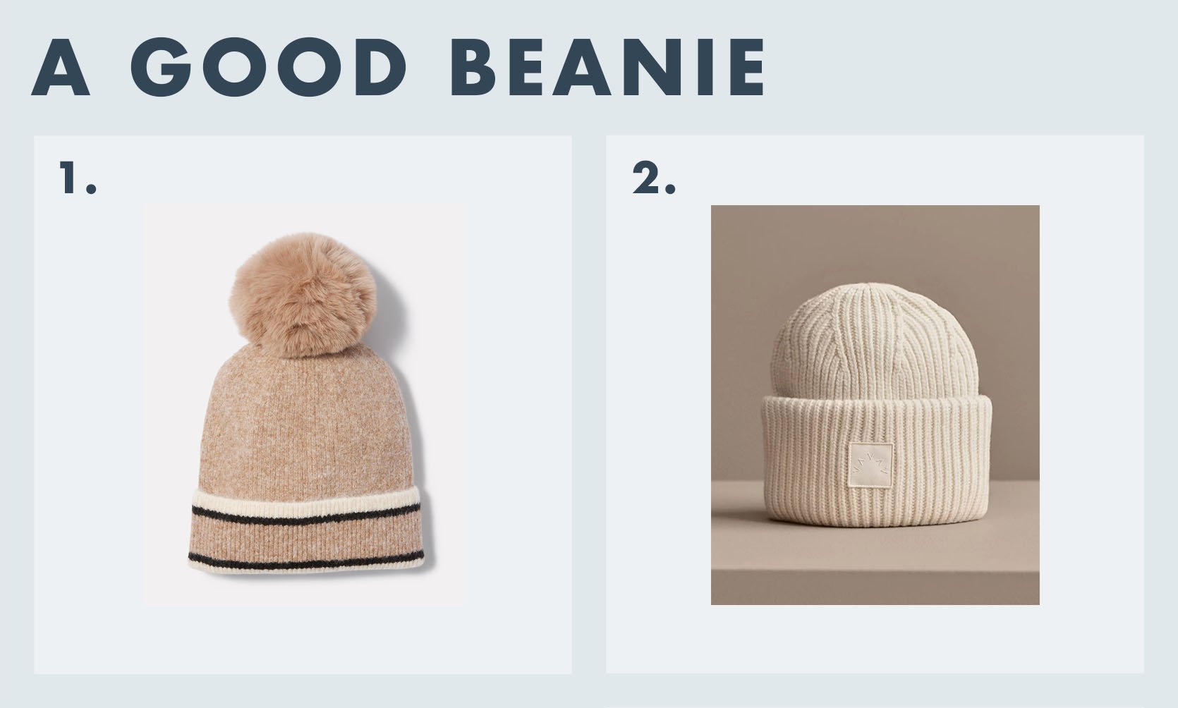 Cheap hats can be cute, but also pill or don’t hold their shape. I don’t have the Evereve one (but it has that perfect playful + classic vibe). I DO have that Varley one that I love and probably wouldn’t have thought to buy it had it not been for a partnership. But now that I own it, I find myself looking for it and only it every time I want to wear one. I have big hair and sometimes slimmer beanies just look a little dumb, but this is chunky enough and I think looks good on my noggin.