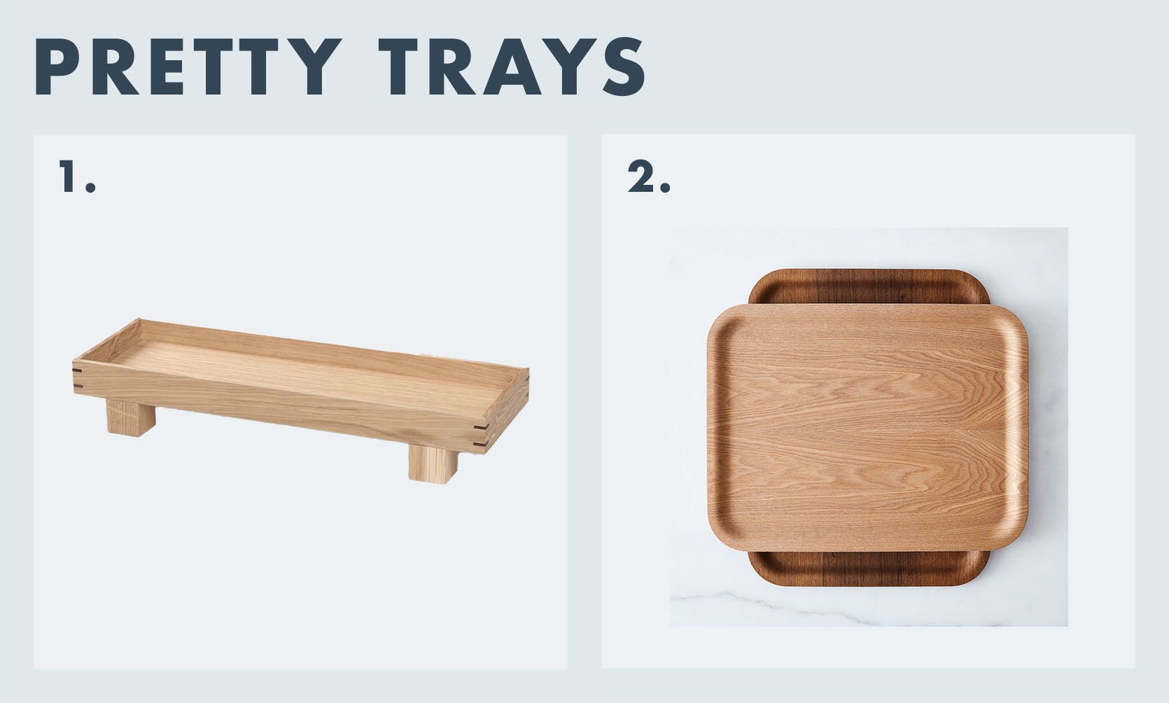 These might look boring, but y’all trays are a household NECESSITY. #1 is by Skagerak and they come in different sizes and stains. I have probably four of them total. Some are in bathrooms (on the toilet, on the vanity) the other larger ones are on the dining table (to. hold office stuff). The key to a good tray is SOME sort of design detail – #1 has it – the foot, the joinery, the high-quality grain. Just really good. #2 is a total classic and I think is best on almost all ottoman or coffee tables. It can lean more casual, less fancy – and can also be a bread server.