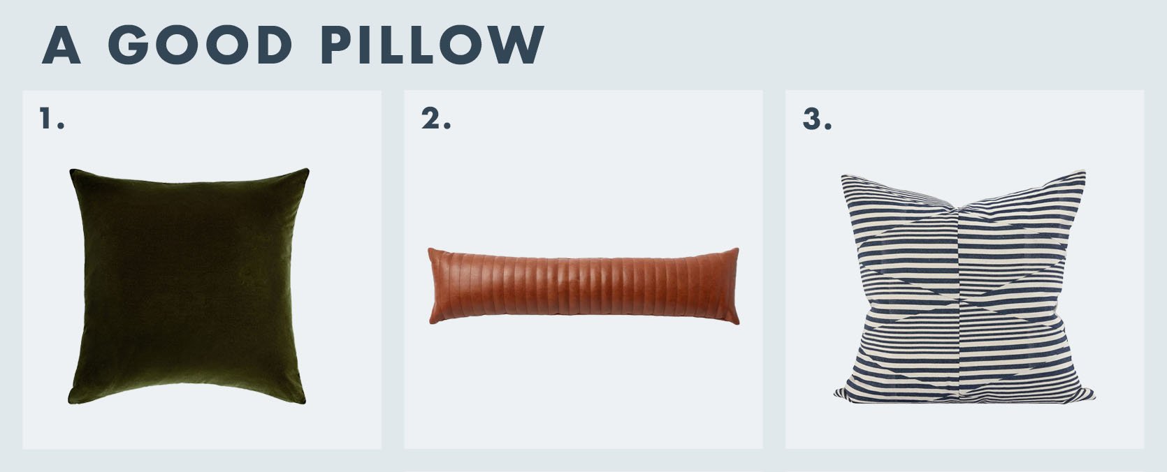- Italian Velvet Pillow Cover | 2. Lumbar Faux Leather Channel Stitch Decorative Throw Pillow | 3. JH x Tensira Kendall Diamond Pillow