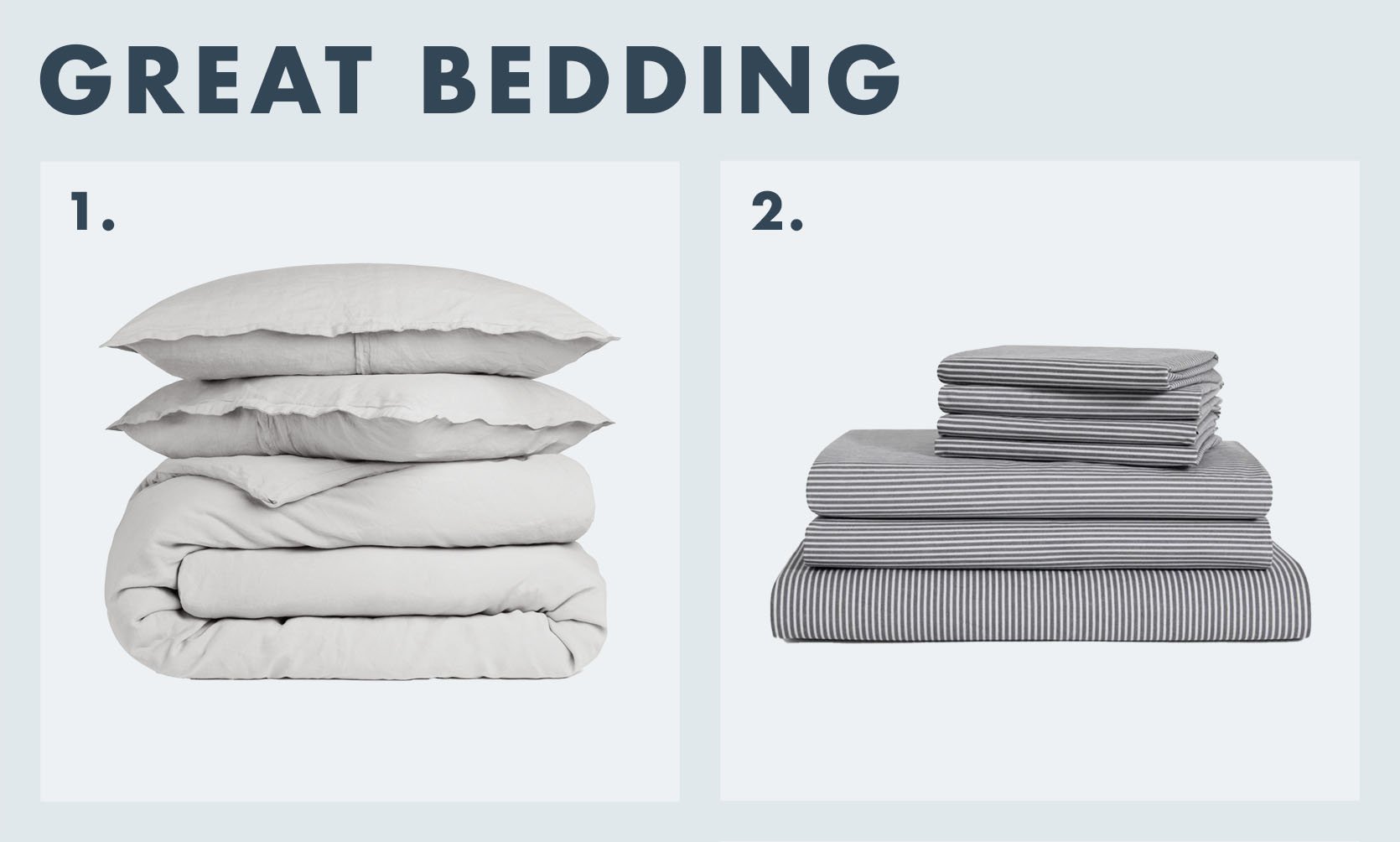 It seems very controversial to love both Brooklinen AND Parachute, but I really, really do (for different reasons). I am a percale sheet lover through and through (tight weave, crisp) and both of these brands nail these. They are extremely soft (way softer than other low-end or high-end competitors if you ask me). I love Parachute’s soft colors so much (we have both the blue and rose on our bed) and I love Brooklinen’s very simple and subtle stripe and grid patterns so much (I don’t do all bright white sheets anymore, but don’t love dark sheets so a slight pattern or a soft pastel is my preference). We put the linen duvet up there (and it’s super popular) and I really love it visually, but being a linen sheet sleeper is very specific (Brian Henderson will change the sheets in the middle of the night if someone accidentally puts linen on ours – it’s a real thing). So if you don’t know that they love linen then go for a percale. But a luxe sheet set or duvet cover is an EXTREMELY good gift (not something you want to spend your own money on). I also really love the linen bedspread from Parachute – so pretty, heavy, and never needs steaming.