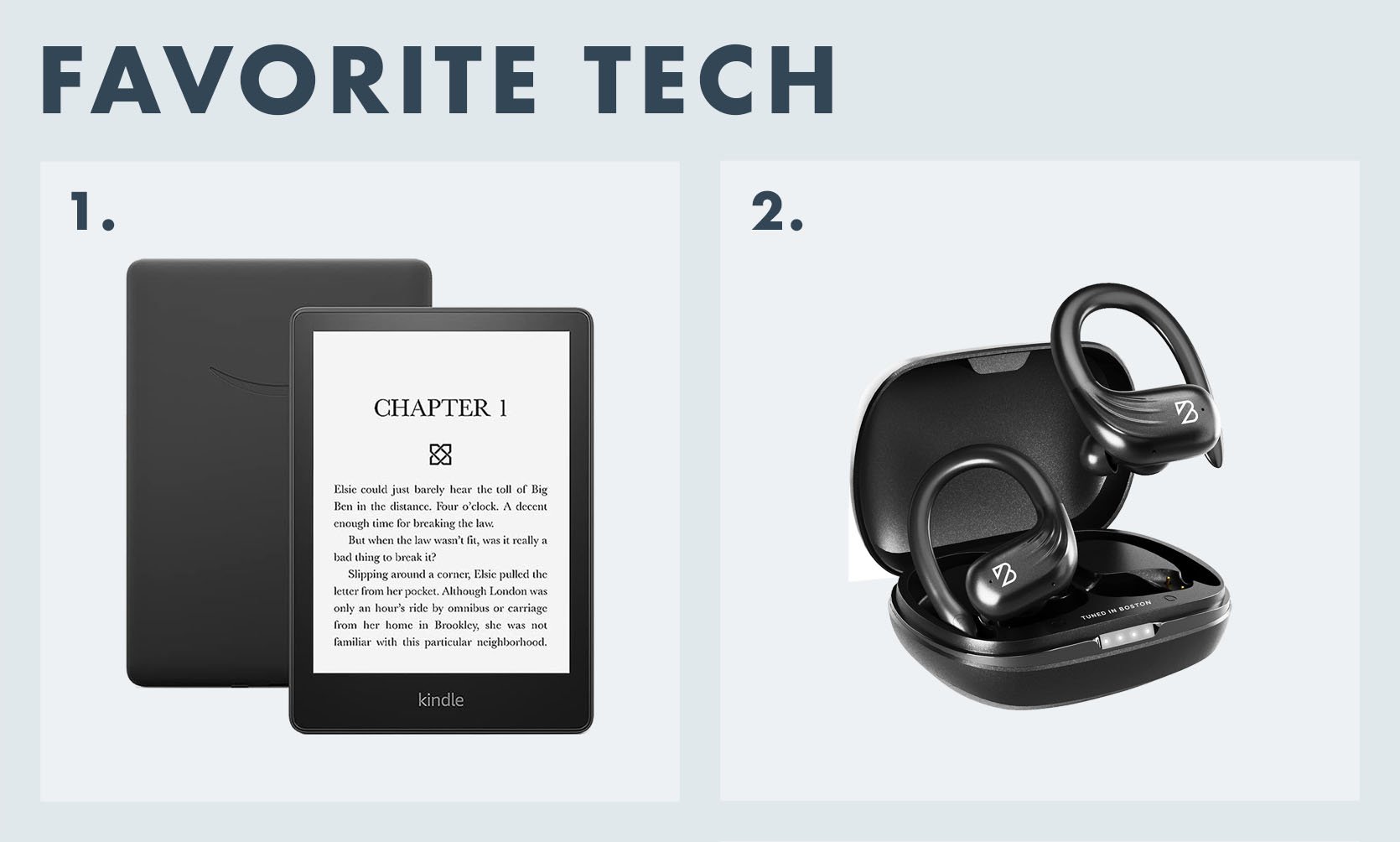 I’m always trying to convert y’all from book to Kindle not because I don’t like physical books (I do!) but because the sheer convenience and nighttime reading ability of the digital book is life-changing. I was anti-Kindle too, now I don’t think I could live without it. Then for my headphones (remember I listen to no less than 10 hours of podcasts a week), these stay in my ears while cleaning/walking (I truly don’t understand the Apple earbuds obsession – those things fall out immediately and are so expensive!!) and the battery of these last for 3-4 hours (think a full Sunday clean session without having to recharge – and here’s a hack – I only have one in at a time because I like to hear my surroundings so I can get 6-7 hours out of a full charge). Do they look dorky? Sure! Do I care if I look dorky while I’m walking the dogs at 6 am in the pitch dark wearing a headlamp and a reflector vest? CLEARLY!