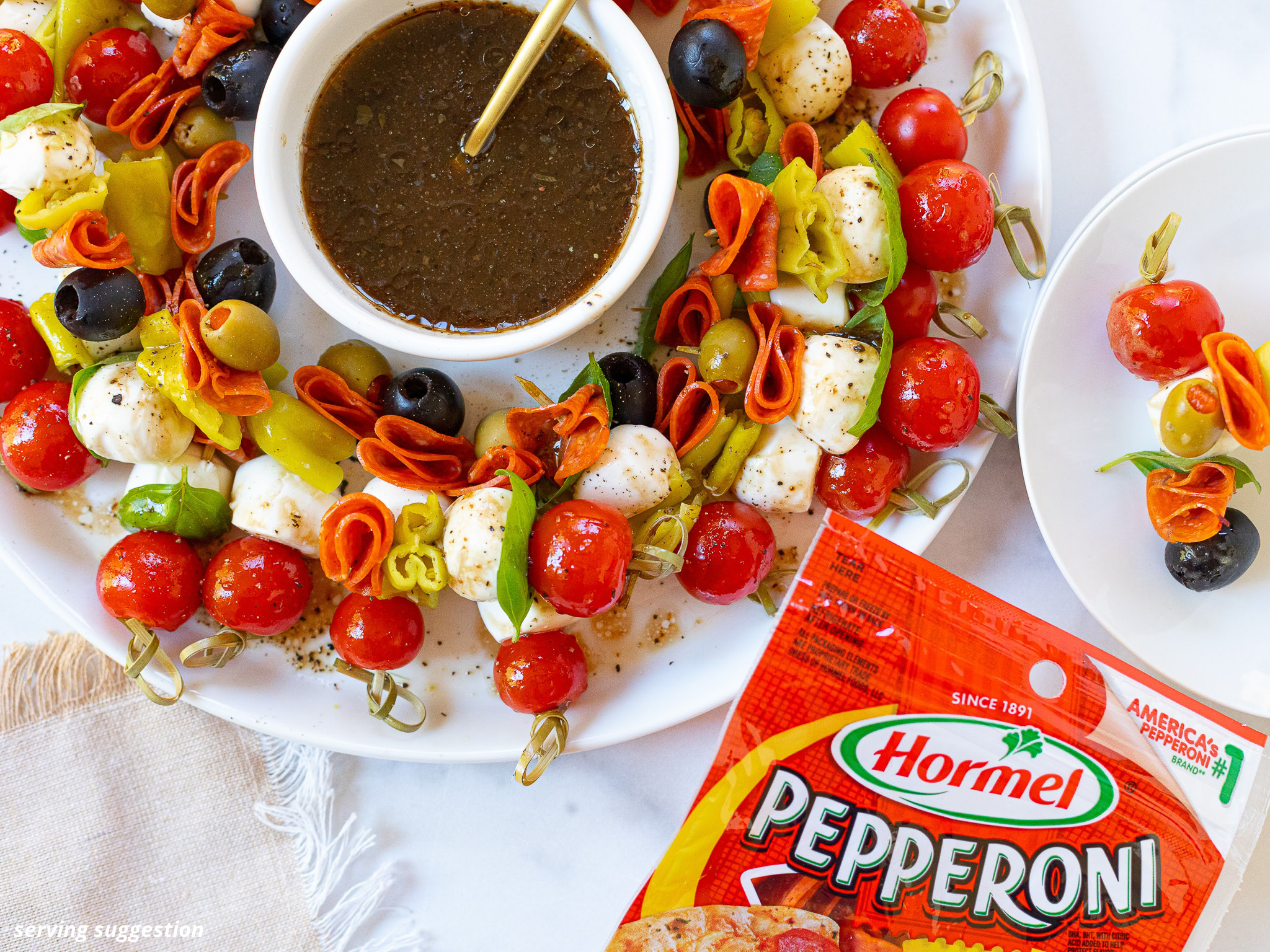 To help ensure my holiday events go off without a hitch, I opt for simple recipes that pack a flavor punch. Tasty appetizers like those Antipasto Skewers are my secret to stress-free entertaining. This easy to assemble snack combines fresh tomatoes and creamy mozzarella along with perfectly zesty HORMEL® Pepperoni for great taste that’s easy to prepare AND easy to enjoy.