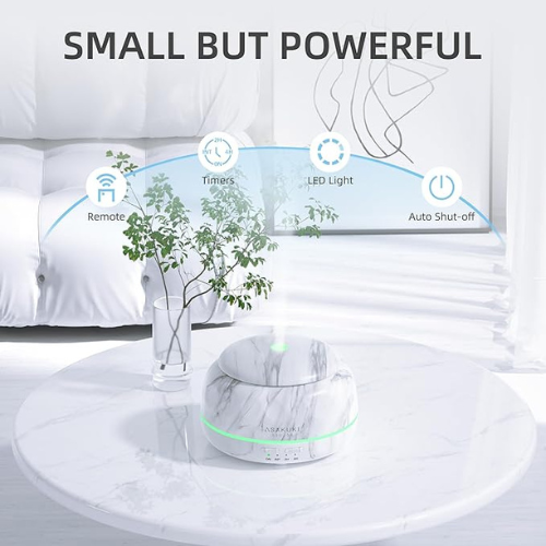 - Easy to Use: This aroma diffuser can be controlled with the buttons or the included remote control. The remote control can be easily operated without getting up and is recommended to be within 3 meters for optimal performance.