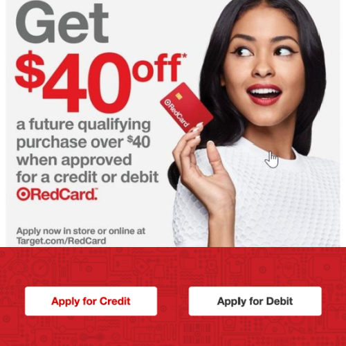 Sign up Target RedCard Debit or Credit: Get a $40 off $40 coupon