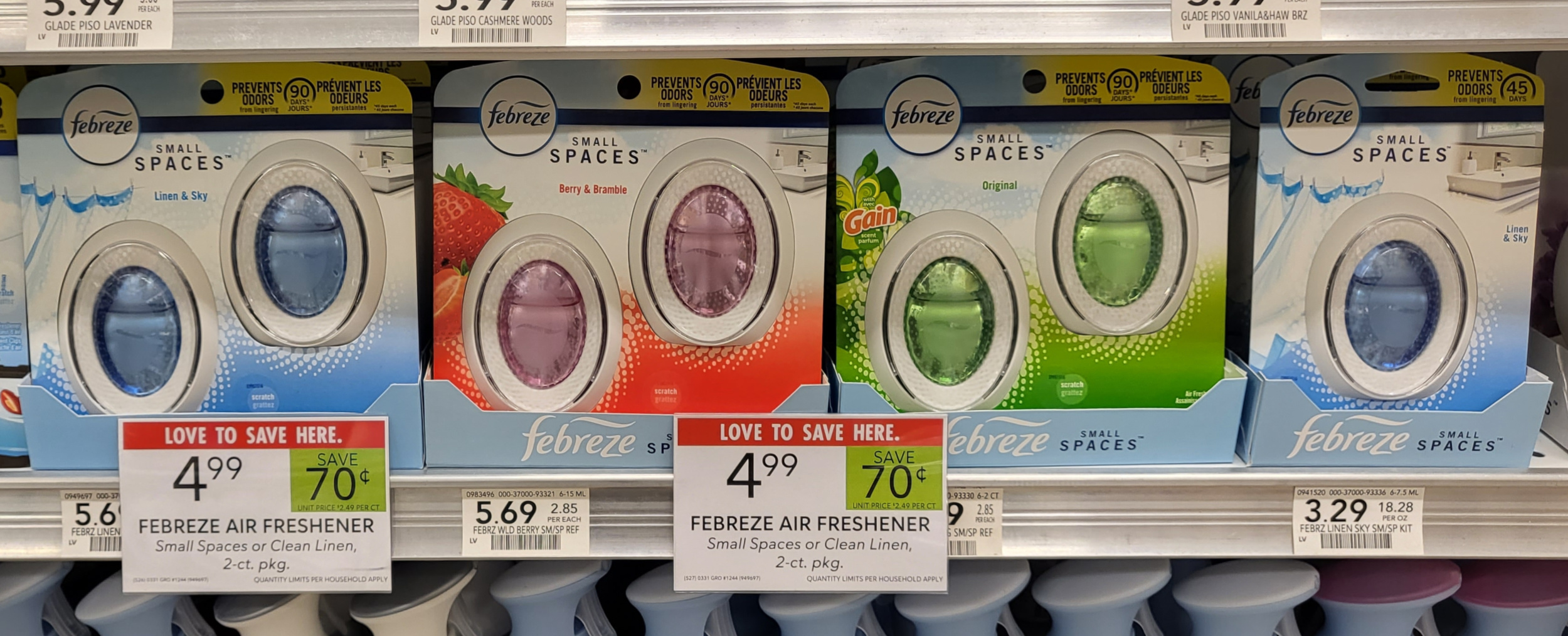 –$3/2 Febreze Small Spaces Products (excludes Febreze Unstopables, Heavy Duty, Ocean, Forest, Wood and trial/travel size) (Publix Digital Coupon)