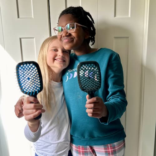 I’m especially excited to use this for my daughter Lindiwe’s hair days. It takes HOURS to detangle and restyle her hair and this lightweight, detangling brush will make that time go much smoother.