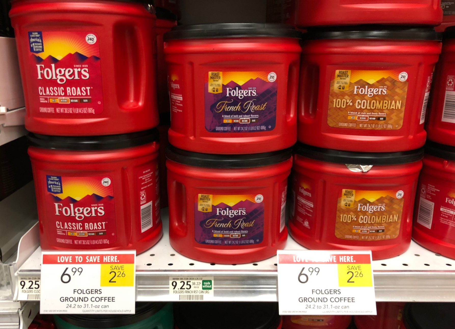 Folgers Ground Coffee, 24.2 to 31.1 oz, $6.99 (reg $9.25)