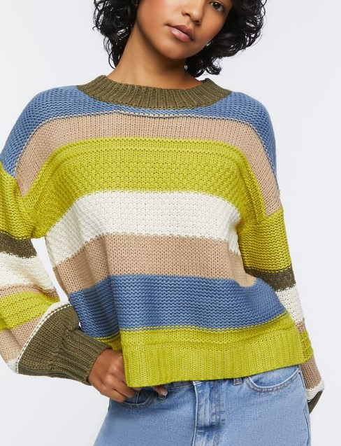 Striped Drop-Sleeve Sweater