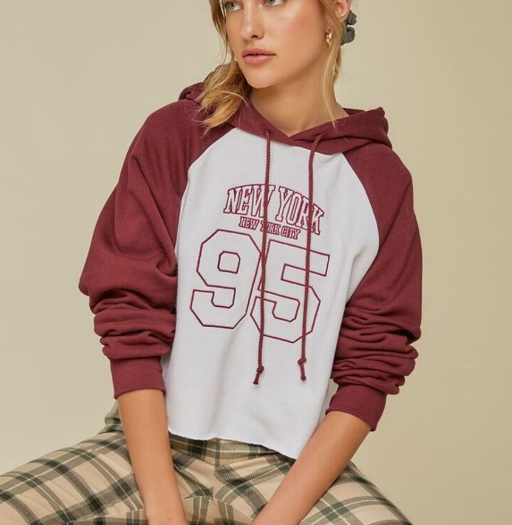 New York Embroidered Raglan Hoodie