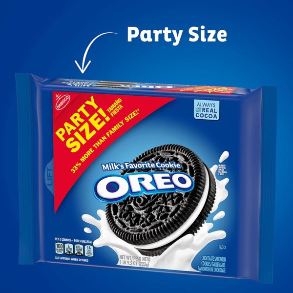 - One 25.5 oz party size package of OREO Chocolate Sandwich Cookies (packaging may vary)